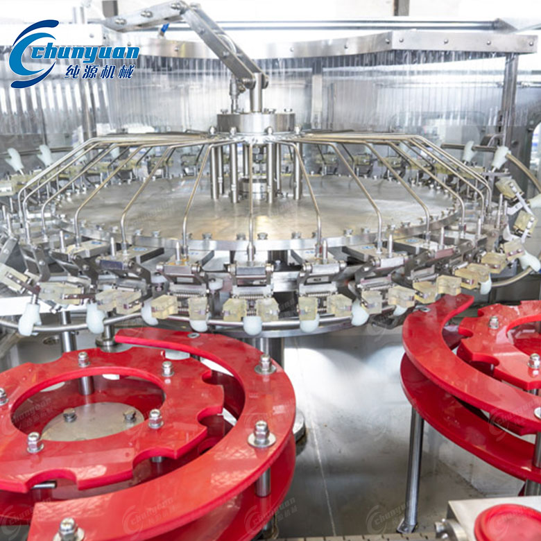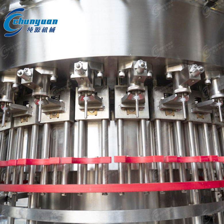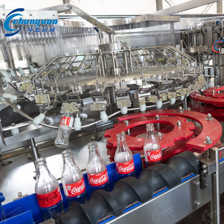 可樂灌裝機:采用等壓灌裝原理,包括沖洗、灌裝、封蓋等功能,適用于玻璃瓶的灌裝。
