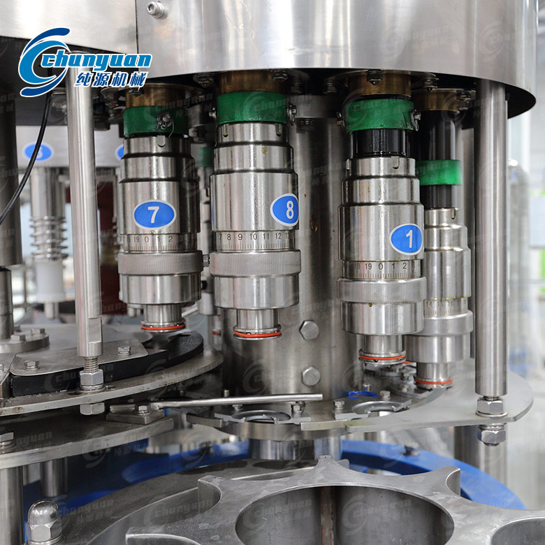 采用PLC電腦程序控制及人機界面觸摸按鈕(電氣可根據客戶需求設計安裝),具有料缸內頁面自動控制,無瓶不罐裝,無瓶不加蓋等功能,采用變頻器無級調速,生產能力數字顯示,調整極其方便。純源機械廠家制造生產的三合一純凈水灌裝機用于聚脂瓶裝各種純凈水、礦泉水、飲用水等生產,其設計科學合理,外形美觀,功能齊全,操作維修方便,自動化程度高。