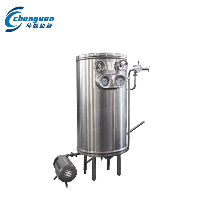 超高溫瞬時(shí)滅菌器一般物料由離心泵泵入滅菌機(jī)中冷熱料熱交換裝置中而得到預(yù)熱,再經(jīng)過(guò)充滿高壓的高溫桶,物料被迅速加熱到殺菌溫度并在此前后保持約6秒,其中的微生物及酶類很快被殺滅。物料出高溫桶后通過(guò)與冷卻水的熱交換獲得冷卻,一般溫度低于65℃。如果下道工序需要提高溫度則可通過(guò)調(diào)節(jié)角式截止閥或循環(huán)等途徑達(dá)到要求,出料溫度85℃,反之則通過(guò)接入冷卻水來(lái)降低出料溫度。出料通過(guò)節(jié)流閥控制,此閥能使在維持一定壓力下物料的沸點(diǎn)高于高溫度。正常生產(chǎn)時(shí)調(diào)節(jié)此閥,由泵的推動(dòng)力克服彈簧壓力而產(chǎn)生背壓控制流量,在清洗滅菌機(jī)時(shí)則應(yīng)全部開啟。循環(huán)貯槽可用來(lái)配制酸堿溶液,對(duì)盤管內(nèi)壁積垢進(jìn)行有效清洗。由于同時(shí)采用不銹鋼三通旋塞,流量可以得到適當(dāng)調(diào)節(jié)。