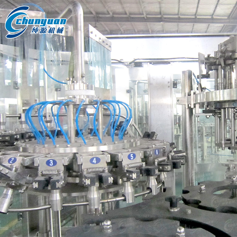 純源機(jī)械廠家制造供應(yīng)的玻璃瓶雞尾酒飲料機(jī)械主要用于玻璃瓶含汽飲料如雞尾酒、碳酸飲料、汽水、可樂的灌裝。玻璃瓶雞尾酒飲料機(jī)械組內(nèi)一次完成洗瓶、灌裝、封蓋三道工序,其瓶子磨損小、傳動準(zhǔn)確平穩(wěn)、瓶型替換快捷。特殊規(guī)劃的沖瓶機(jī)瓶夾結(jié)實(shí)耐用,不接觸瓶口螺紋部位,防止瓶口二次污染。與液體接觸的零部件全采用優(yōu)質(zhì)不銹鋼材料或食品級工程塑料,符合國家食品衛(wèi)生標(biāo)準(zhǔn)。