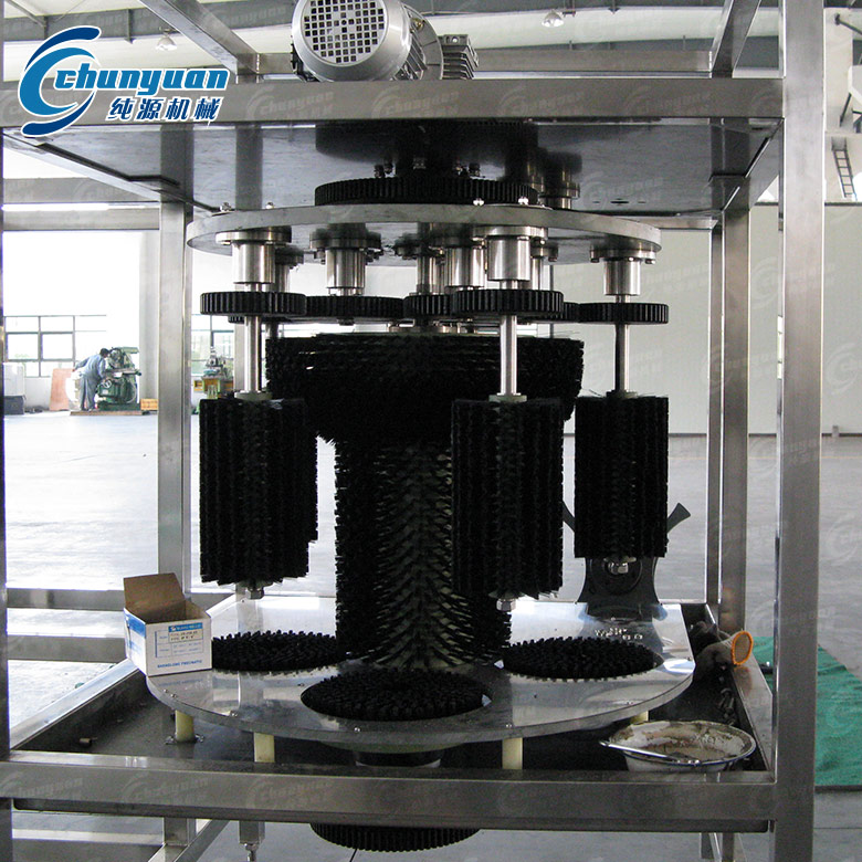 全自動外刷桶機(jī)由不銹鋼機(jī)架、封板(不銹鋼〉、主旋轉(zhuǎn)毛刷、毛刷調(diào)速電機(jī)、撥輪調(diào)速電機(jī)、捅底部旋轉(zhuǎn)毛刷、撥輪結(jié)構(gòu)、 沖洗水泵、噴淋室等組成。全自動外刷桶機(jī)采用優(yōu)質(zhì)不銹鋼制作,耐腐蝕,易清洗。主要氣路原件均采用臺灣亞德克產(chǎn)品,該機(jī)結(jié)構(gòu)緊湊, 工作效率高且穩(wěn)定可靠,自動化程度高,操作簡單。