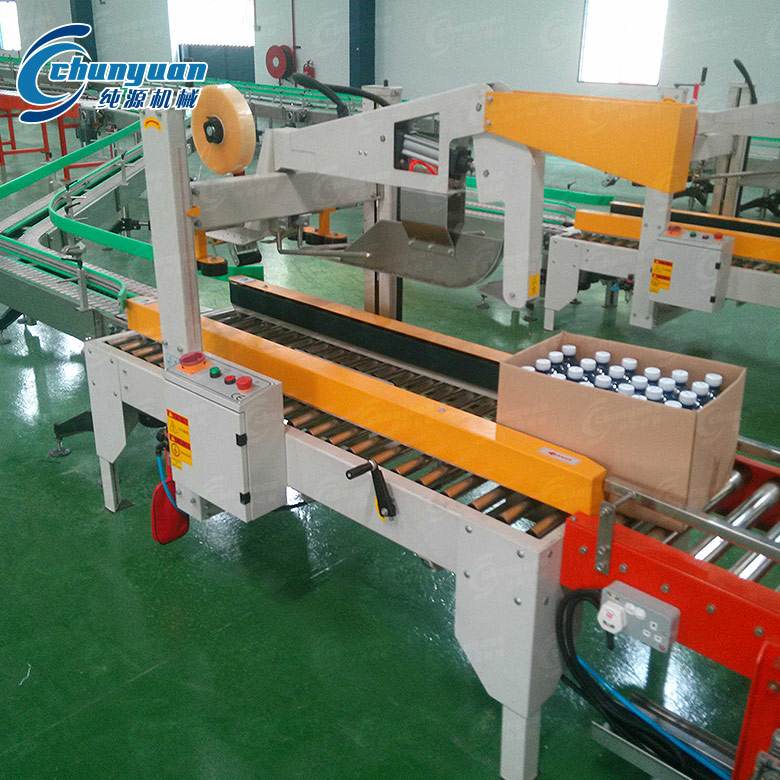 全自動折蓋封箱機紙箱上蓋自動折入,平穩(wěn)順暢,封箱作業(yè)一氣呵成,美觀省力,可配合自動化包裝機械系列使用。